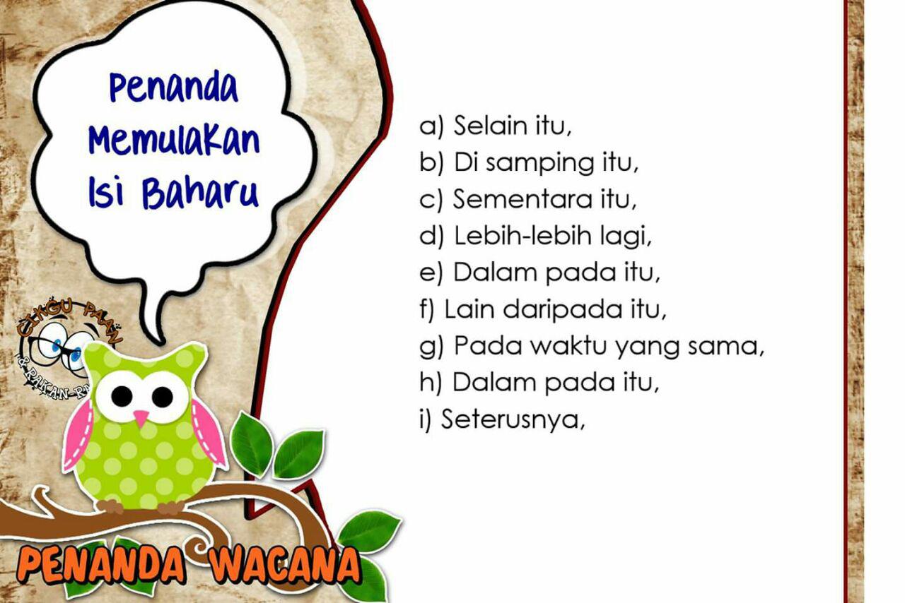 Penanda wacana ialah perkataan ataupun rangkaian perkataan yang berfungsi mempertalikan sesuatu idea, hujah, dan pandangan seseorang semasa menulis ataupun berucap. Seandainya sesuatu wacana berkenaan tidak mempunyai penanda wacana yang tepat, ini akan menyebabkan seluruh kandungan wacana berkenaan tidak mempunyai kesatuan dan perpautan yang lengkap. Contoh penanda wacana seperti berikut: